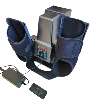 Use of the AnkleMotion device is very straightforward. The same device can be used during bed rest or while in a seated position with a simple adjustment. Motion speed may be controlled with the remote control or by pressing on the device.